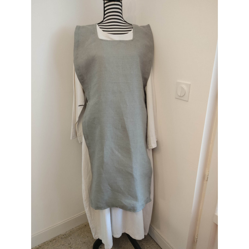 Surcot sous forme de tablier ou tabard, avec des liens sur les côtés, typique du XIIe siècle et du début du XIIIe. En 100% lin. Fabrication artisanale par nos soins, à Montpellier Hérault. .